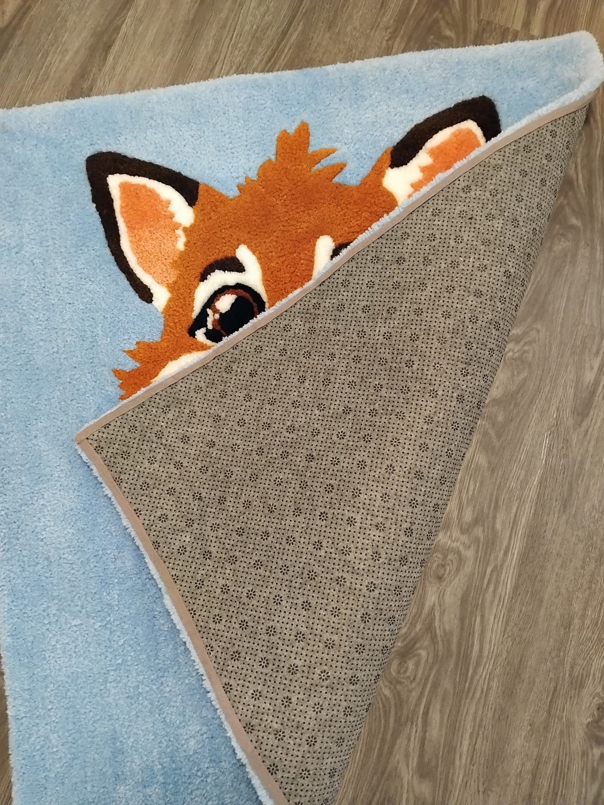 Akryylilangasta valmistettu matto. Takana huopa liukuesteillä. 91x82,5